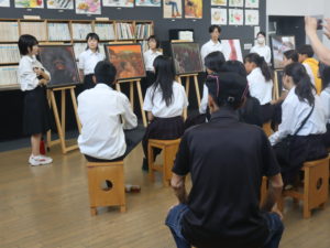 2024年7月31日、本校にて大阪府立松原高等学校の生徒さんと先生方約20名と原爆の絵の制作者との交流会を行いました。