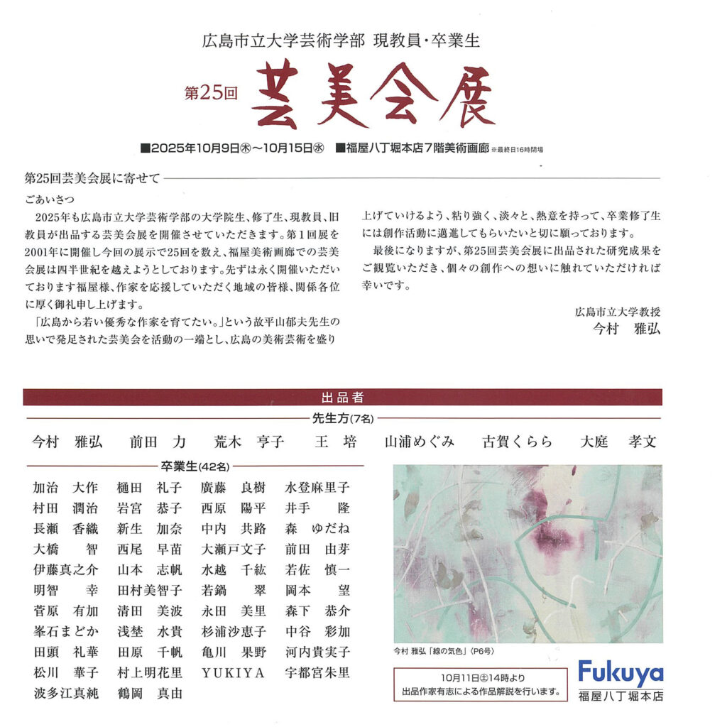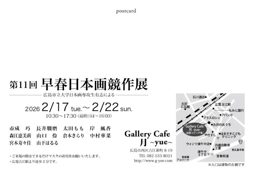 広島市立大学日本画専攻有志による作品展です。ぜひお立ち寄りください。