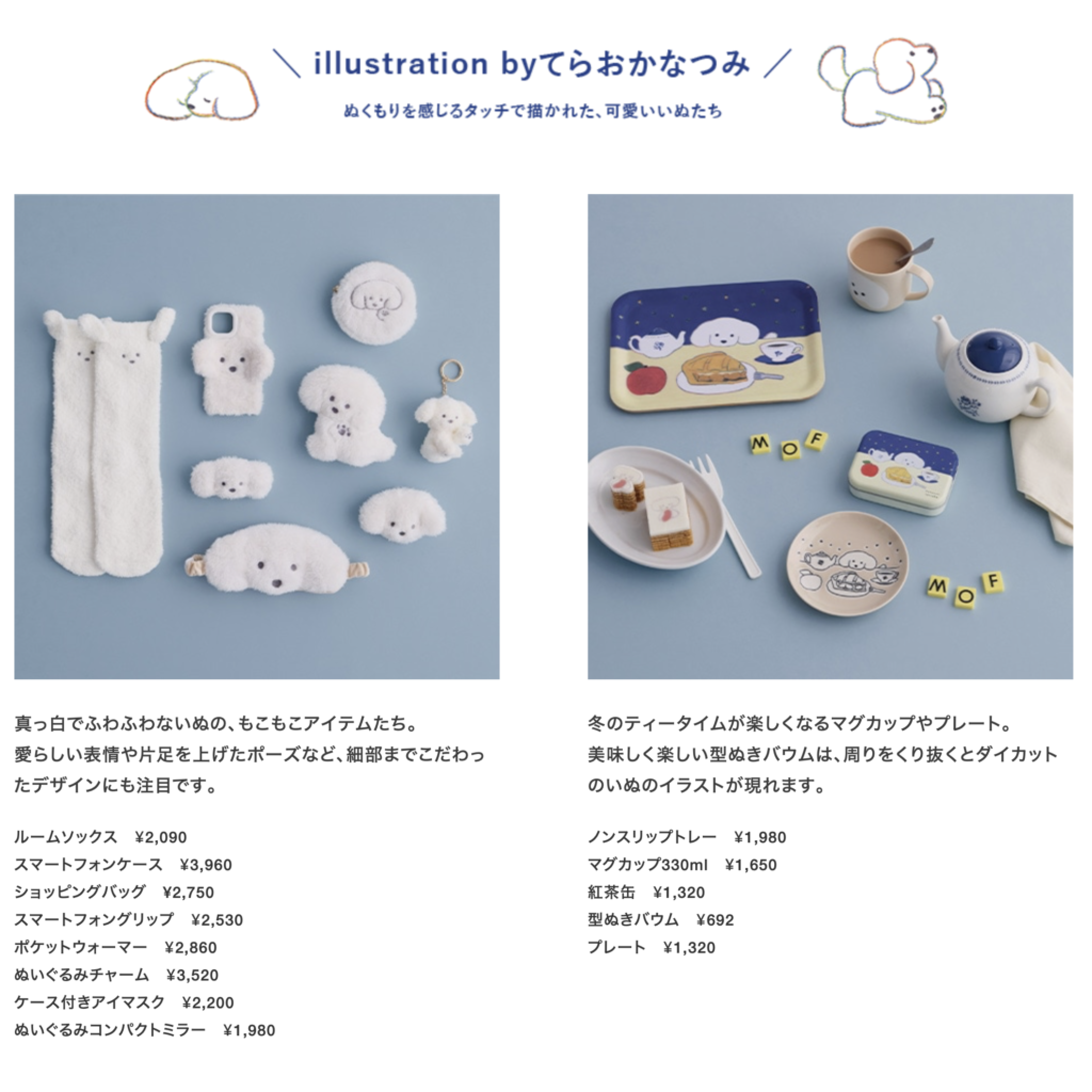 オリジナルグッズは、蔦屋書店オンラインストアでも9月24日(水)より予約受付を開始し、10月6日(月)より発送します。てらおかなつみさんの柔らかな世界にぜひ触れてみてください。(蔦屋書店HPより)