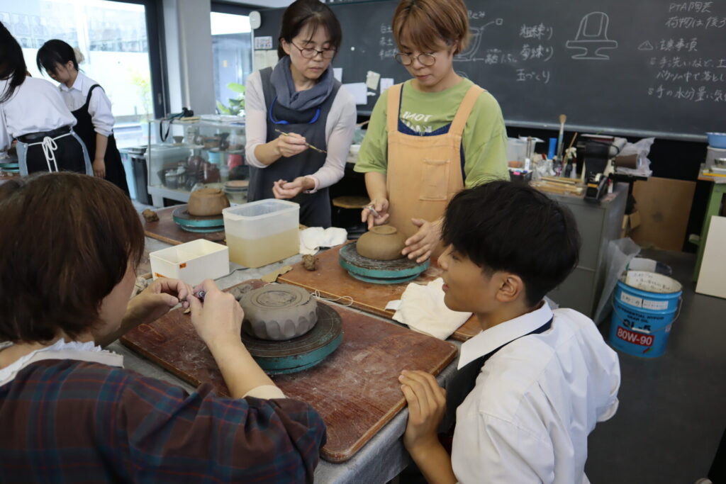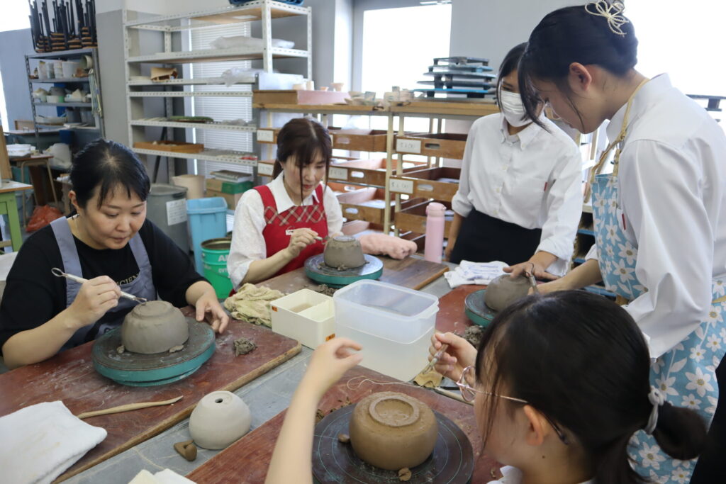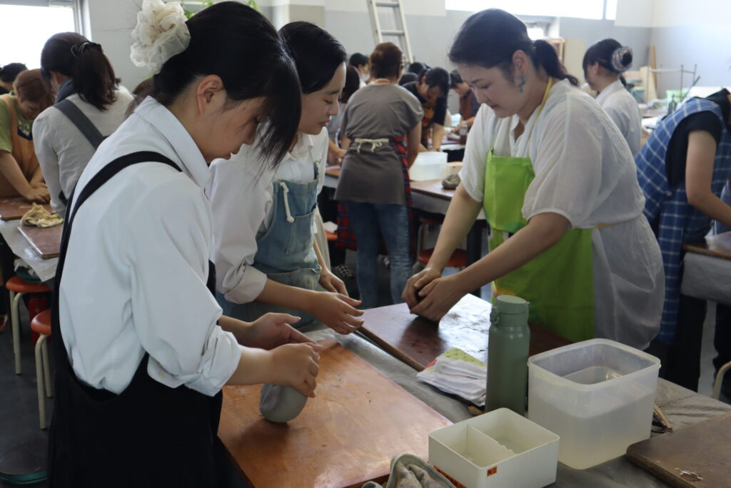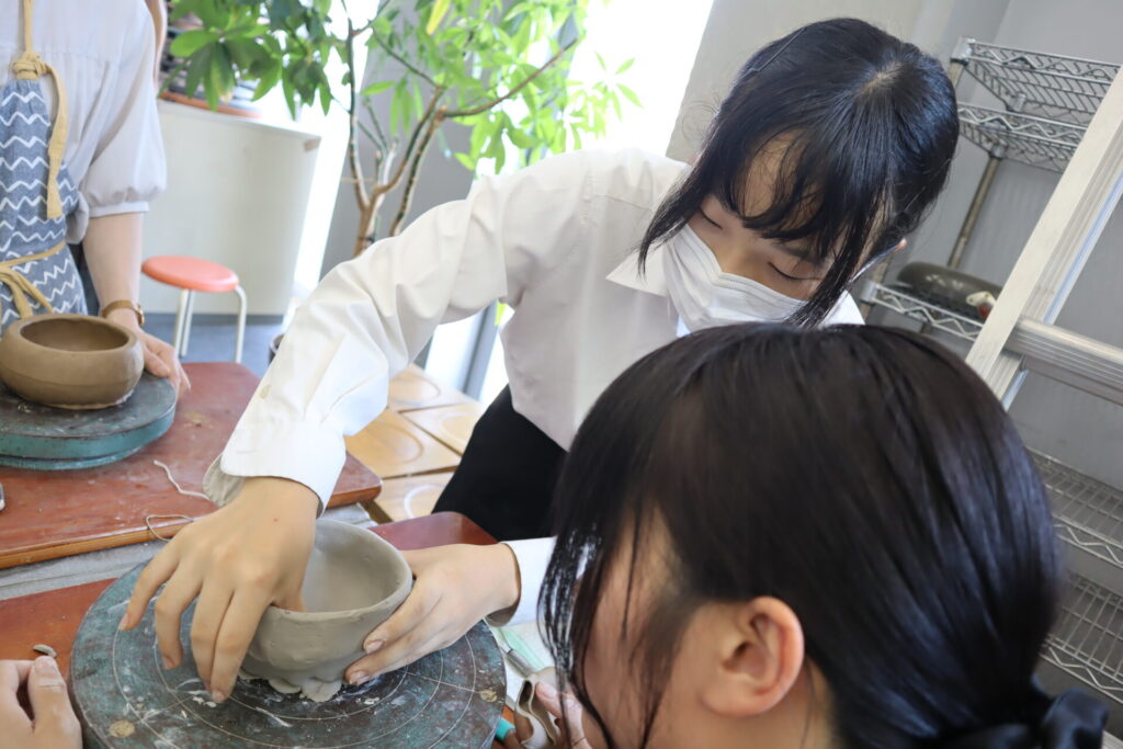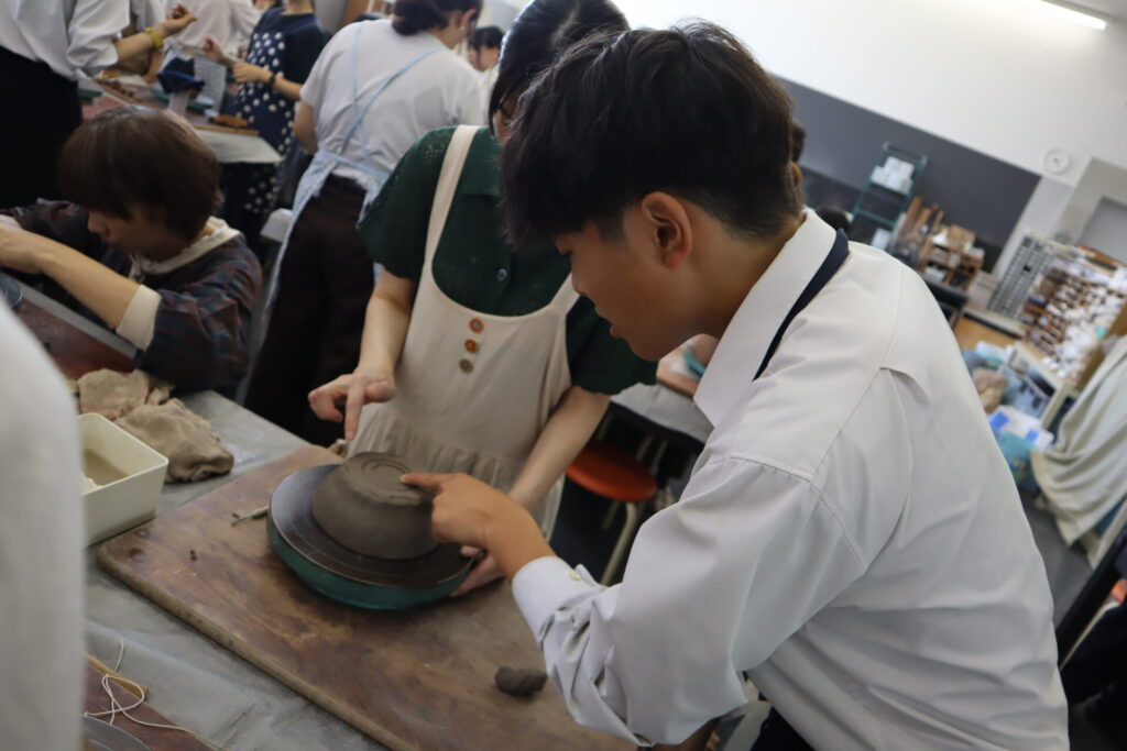 今年度は基町高校保護者のみなさんと、華道部・茶道部の生徒で小鉢をベースに様々な器を成形しました。