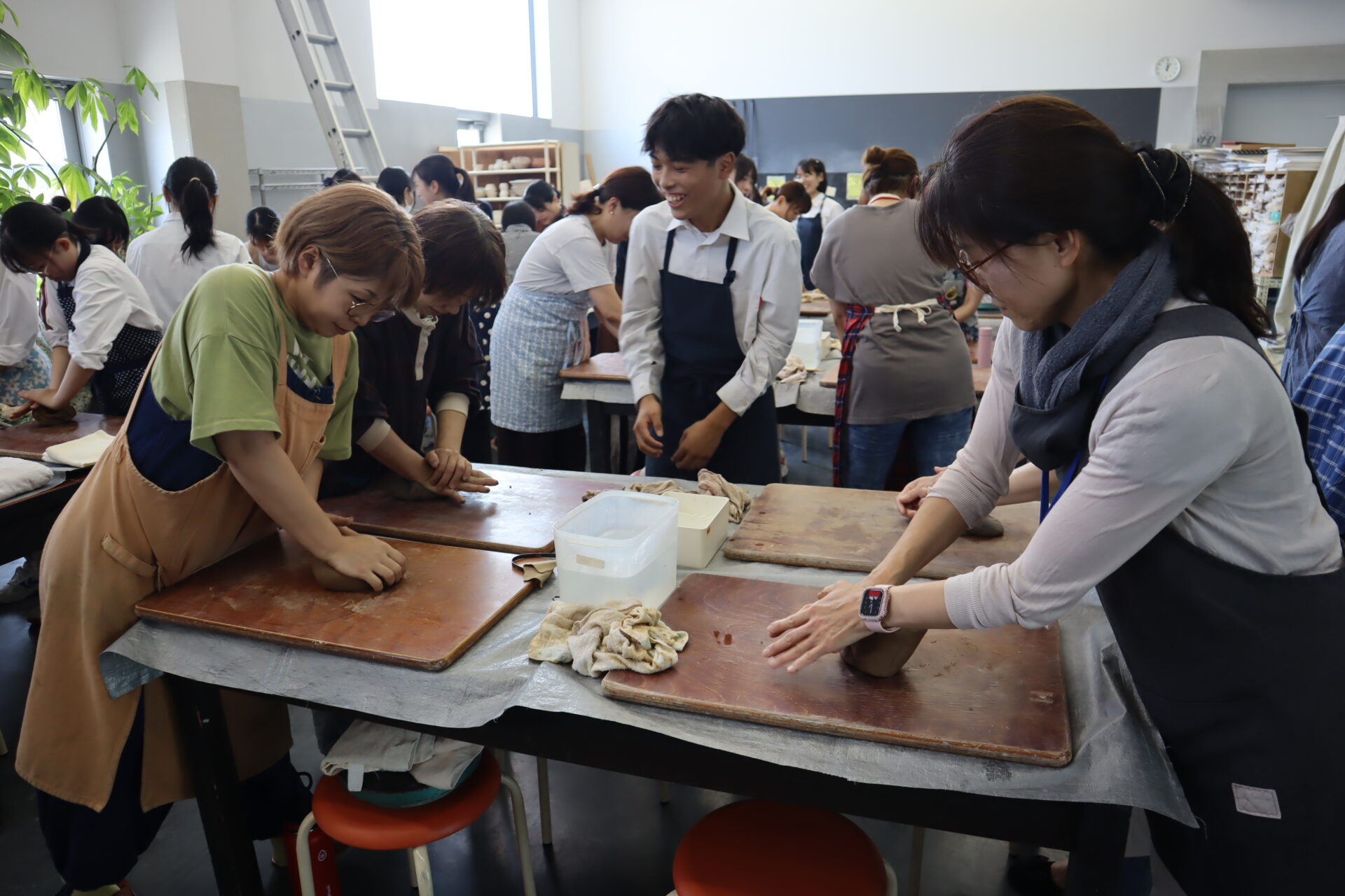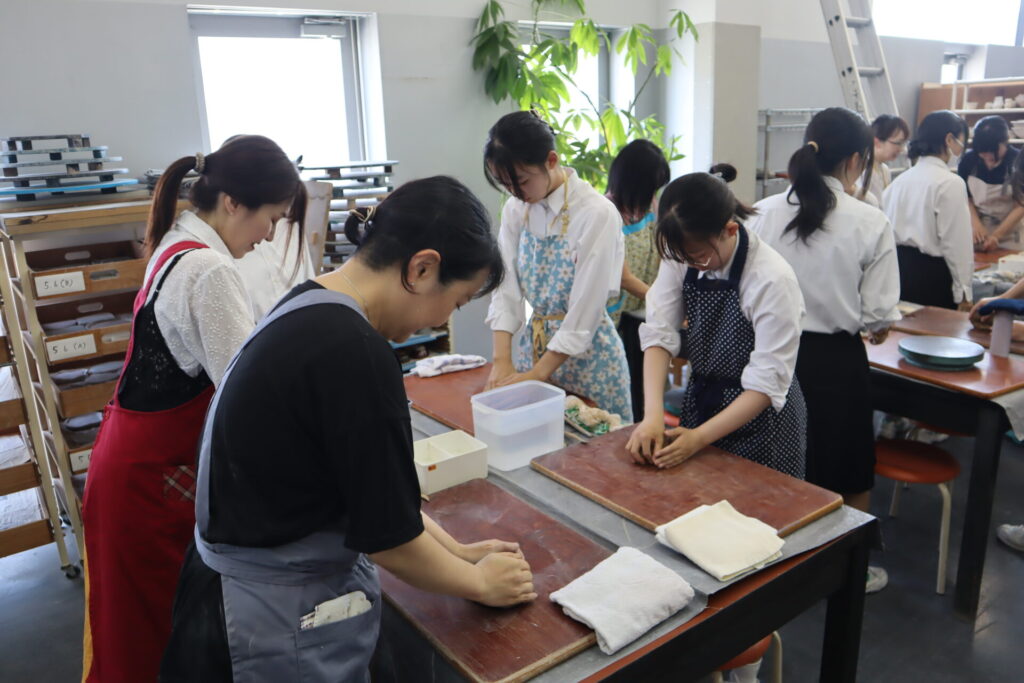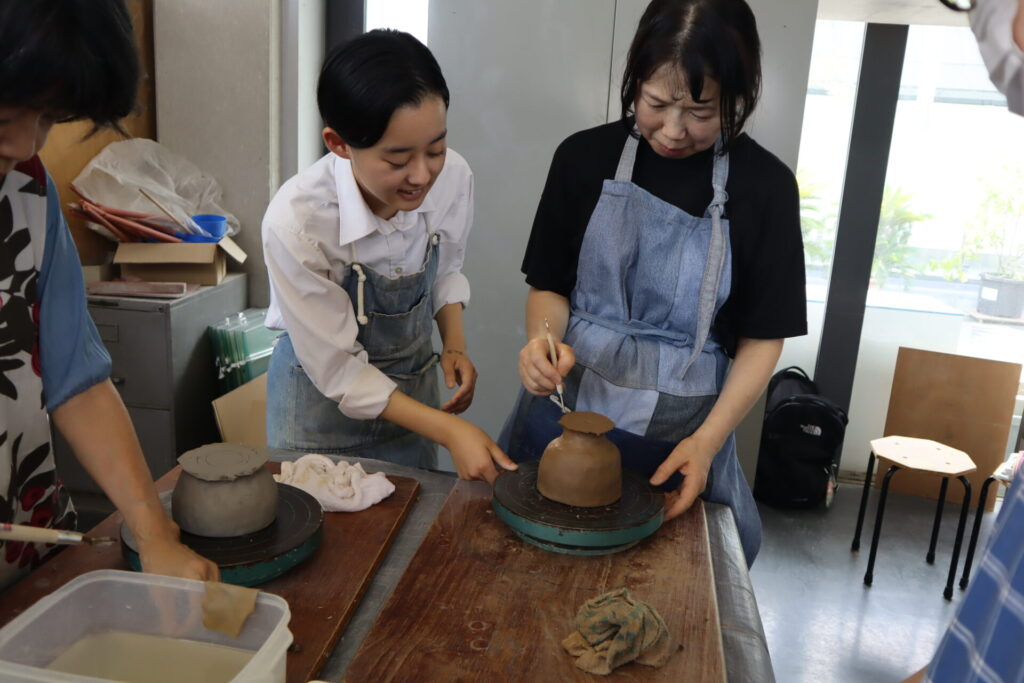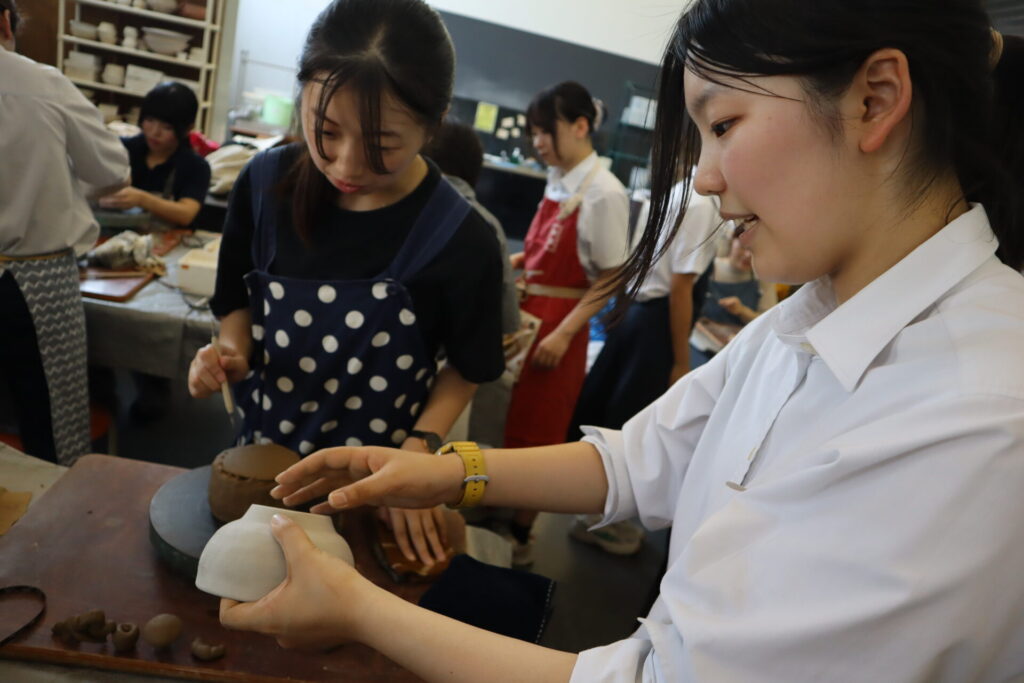 今年度は基町高校保護者のみなさんと、華道部・茶道部の生徒で小鉢をベースに様々な器を成形しました。