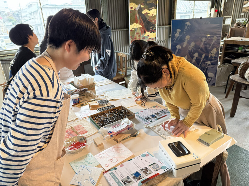 会場となったミナガルテン(広島市佐伯区)では、創造表現コース・美術部生徒の作品の展示や、手作りグッズの販売、ワークショップなどが行われました。