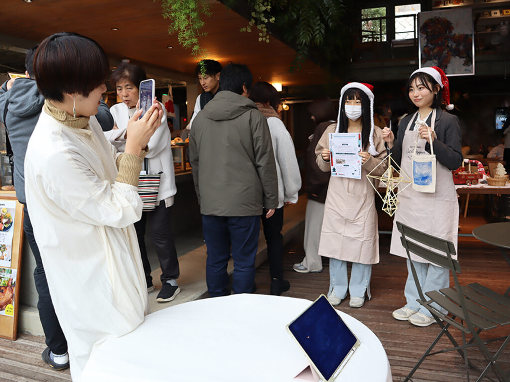 販売エリアにはクリスマスの装飾を施し、商品を見ている時も楽しめるような雰囲気づくりを心掛けました。心を込めて作った商品を買って頂けた時は、とても嬉しい気持ちになりました。