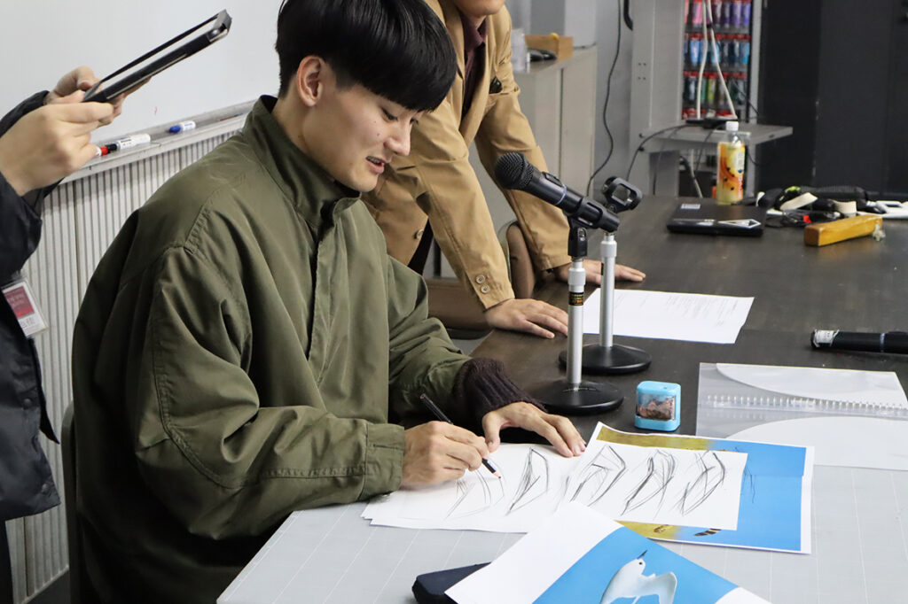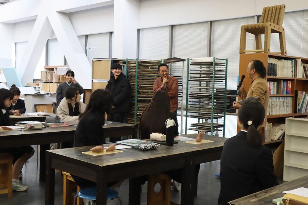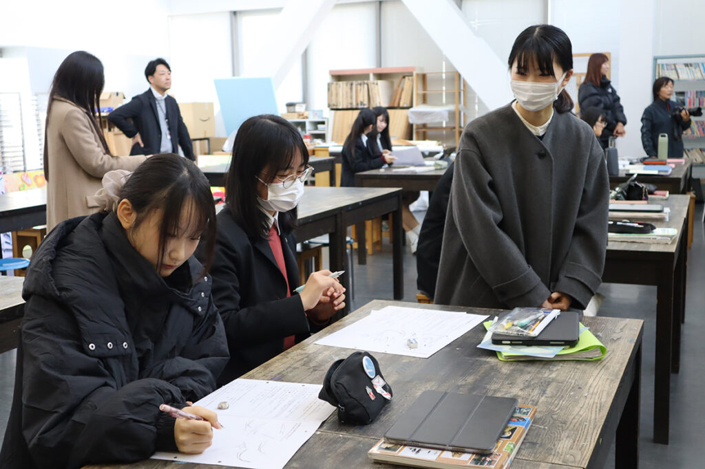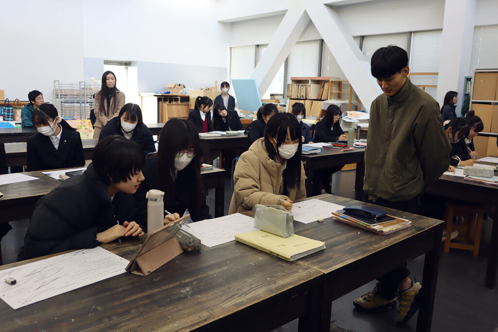 濱口先生(創造表現コース卒業生)からは、スケッチの描き方や、イメージを形にする時の考え方を実演を交えて教えいただきました。