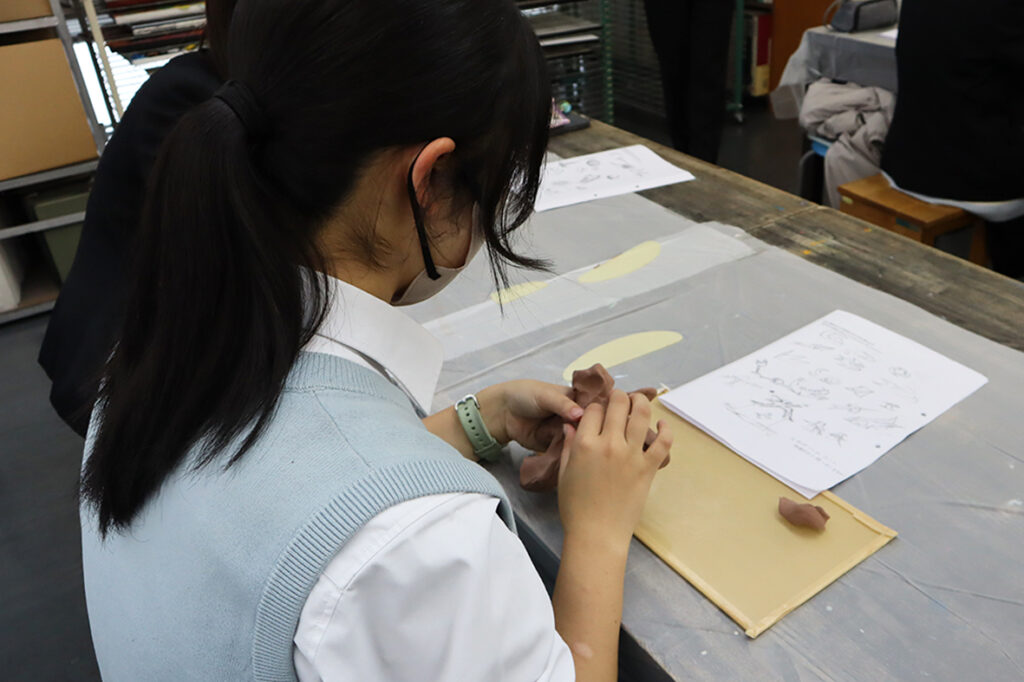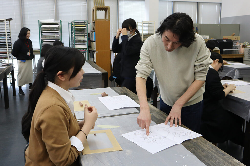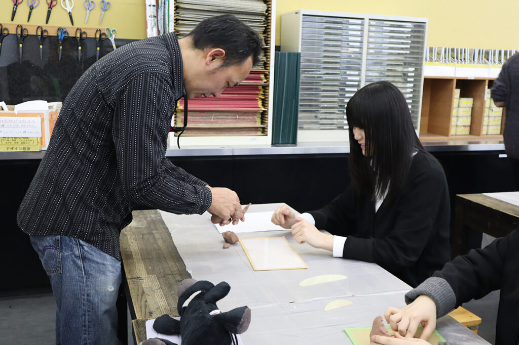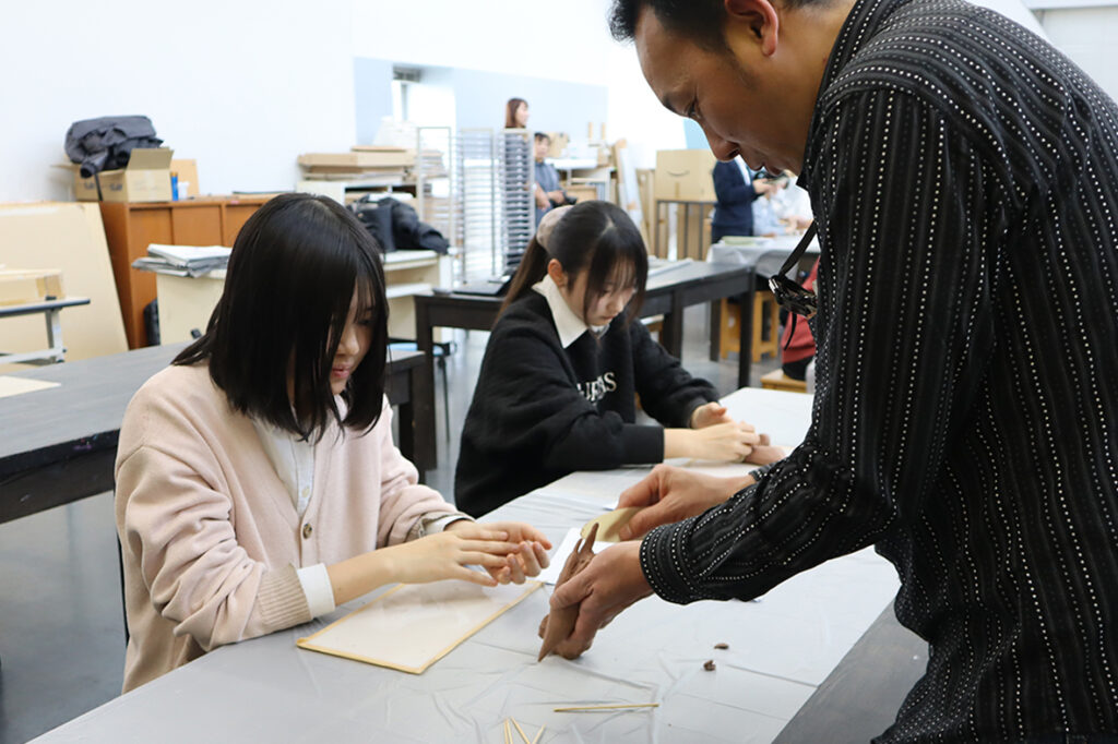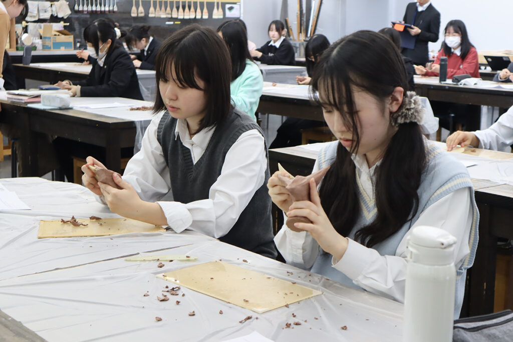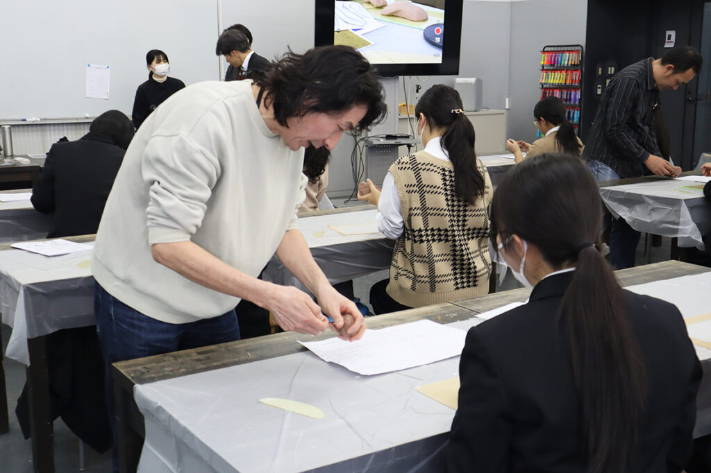 こちらの作業も、谷口先生(基町高校卒業生)にデモンストレーションをしていただき、手本を見たり先生方に色々質問したりして、それぞれが自由に作っていきました。