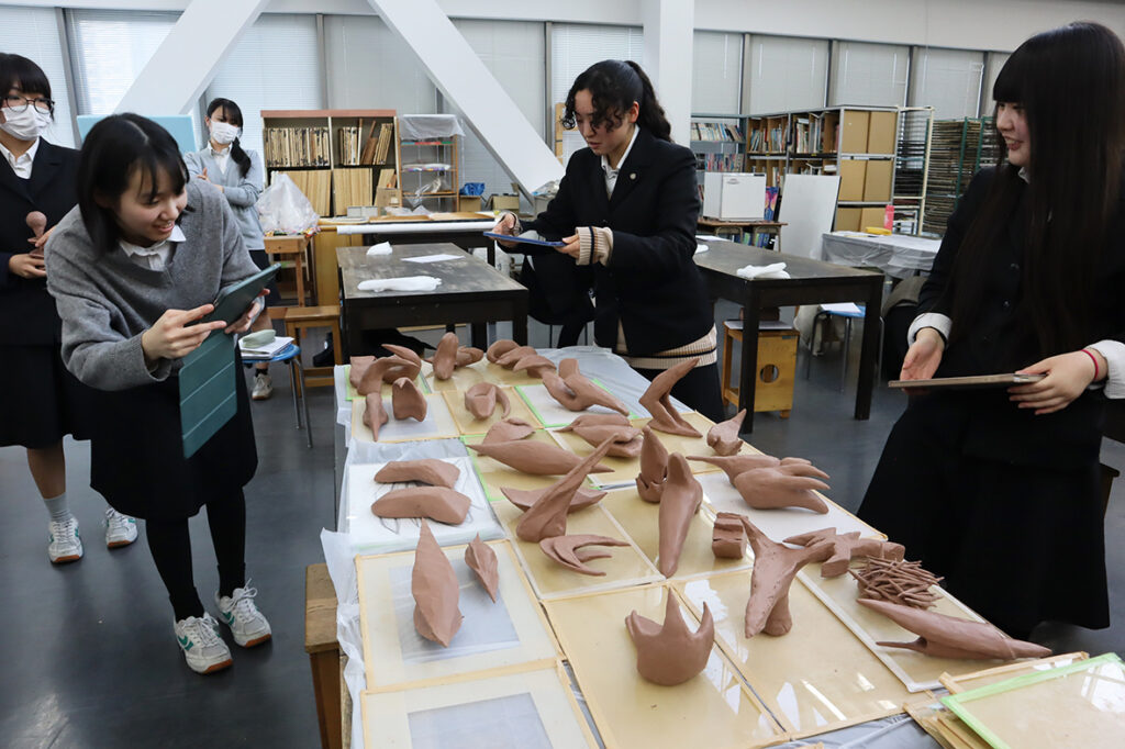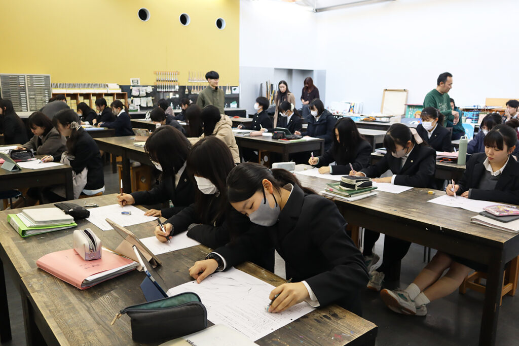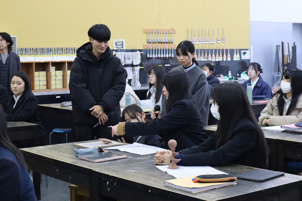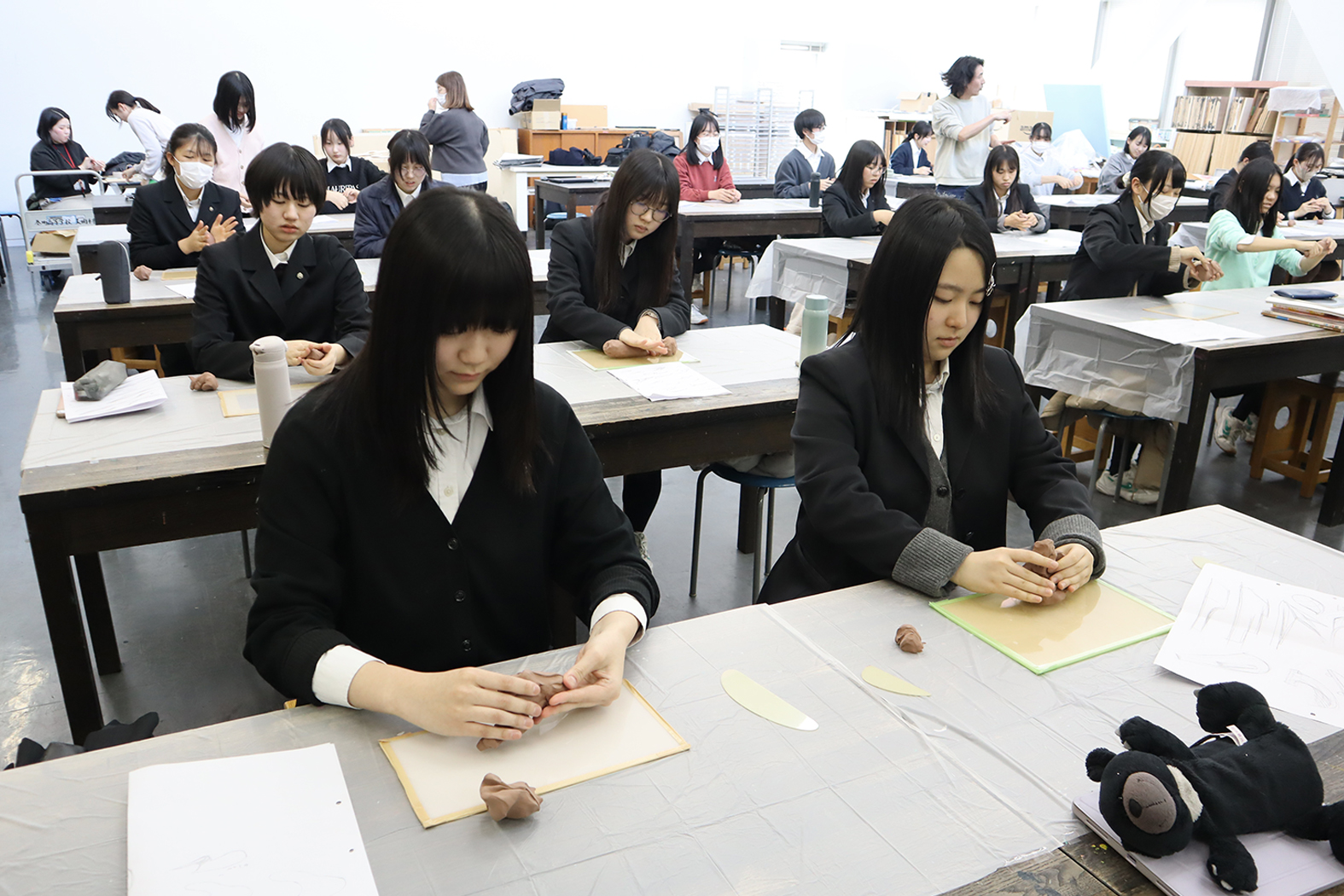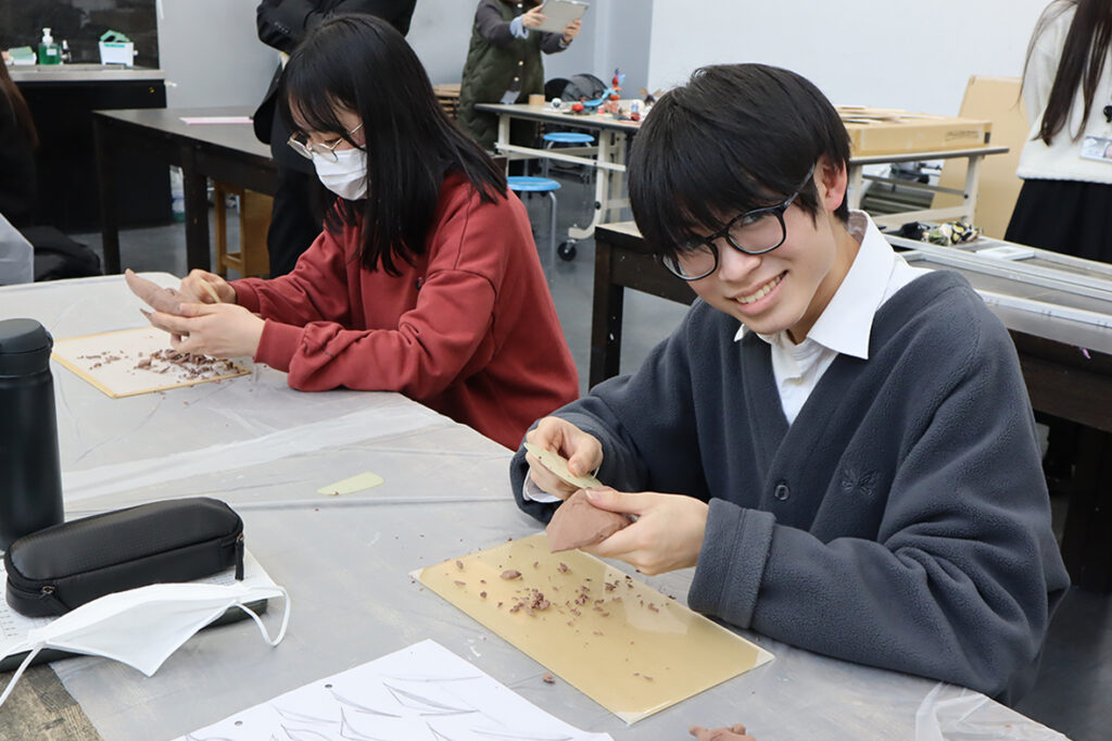 こちらの作業も、谷口先生(基町高校卒業生)にデモンストレーションをしていただき、手本を見たり先生方に色々質問したりして、それぞれが自由に作っていきました。