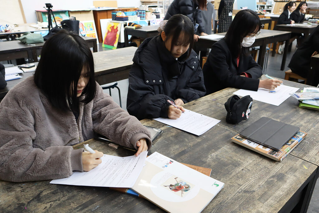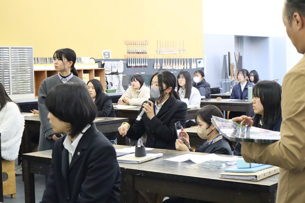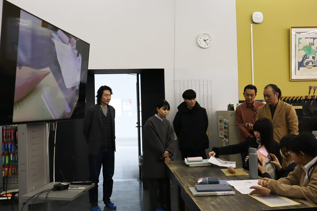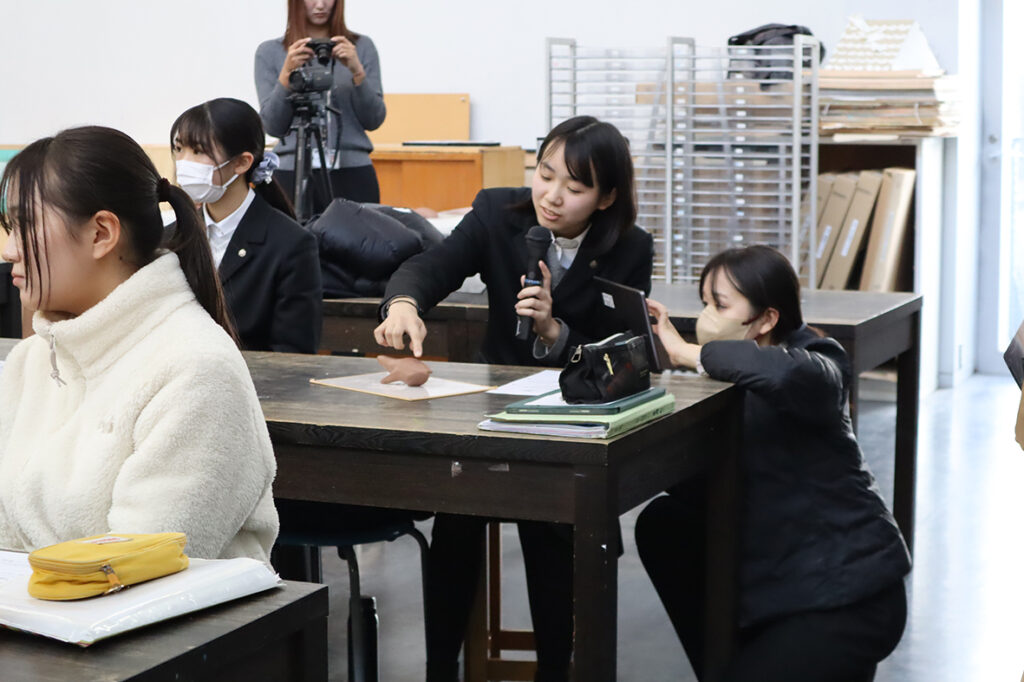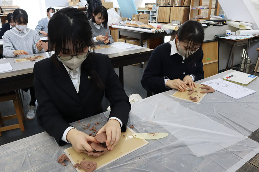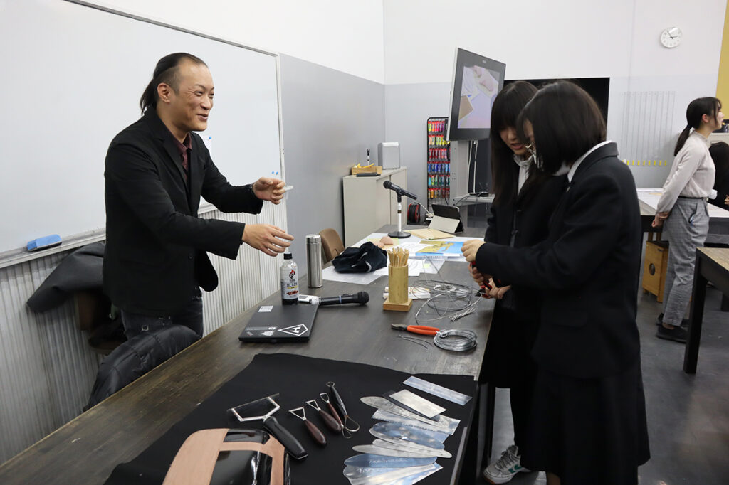 こちらの作業も、谷口先生(基町高校卒業生)にデモンストレーションをしていただき、手本を見たり先生方に色々質問したりして、それぞれが自由に作っていきました。