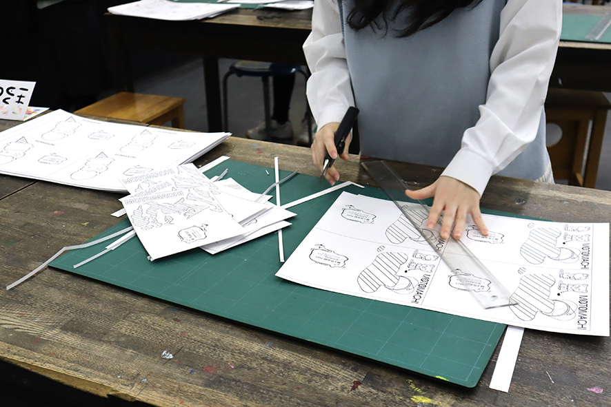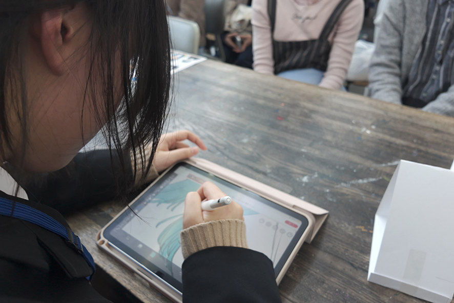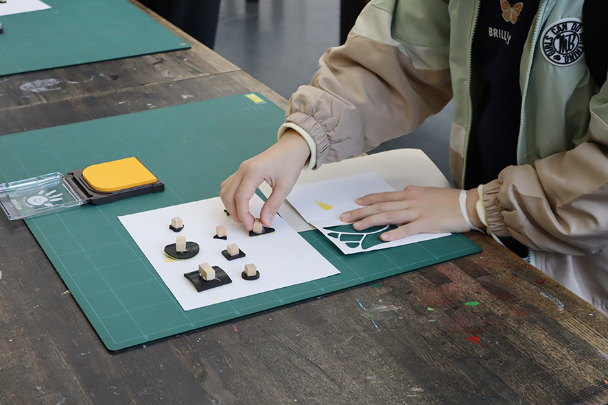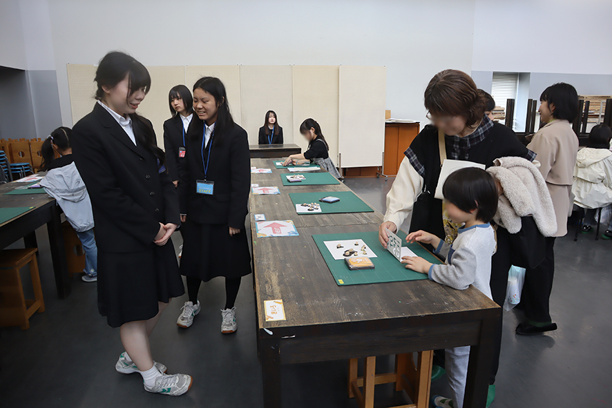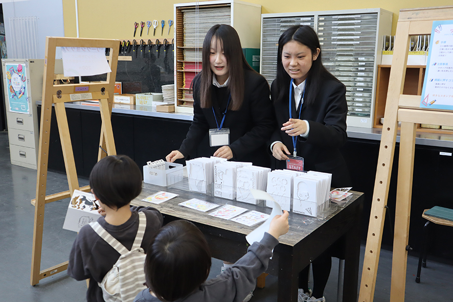 ・スタンプを用いたオリジナルカード作りや生徒が似顔絵を描くなどの体験型ワークショップ