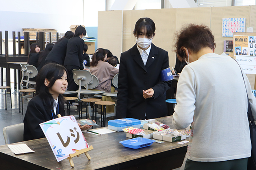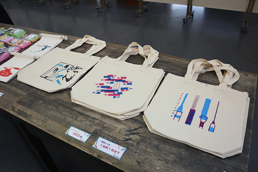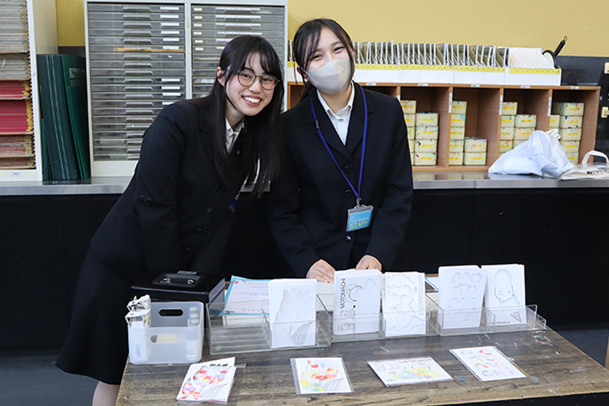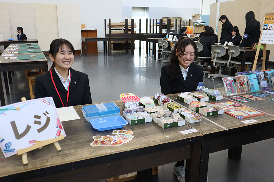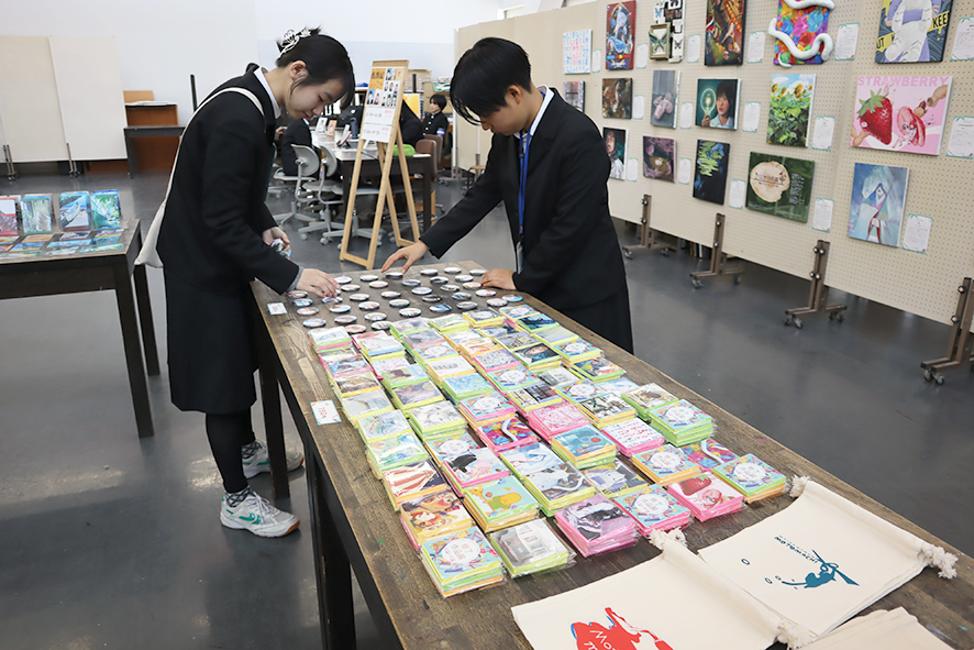 ・生徒がデザインした缶バッジミラーやクリアファイルなどのオリジナルグッズ有料頒布